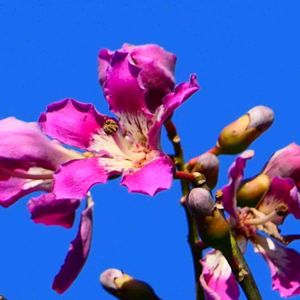白とピンクのトックリキワタの花🌼🌸 よく見かけるのはピンク色がほとんどで、白色はレア物♫ どうですか〜?あなたはどちらがお好き?