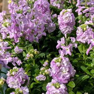 種からのストック 密集してしまい花がちんちくりん🩷🪻🩷🪻🩷🪻🩷 1割くらいが一重かな💜