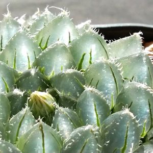 おはようございます!今日も多肉仕事をしなければ。やることはたくさん・・・ 朝日で青光りくん