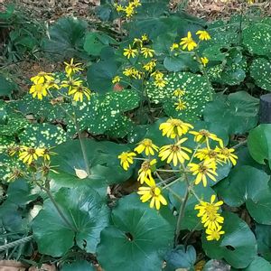 ✿GS今日のお花✿ ツワブキ💛💚 ①ツワブキ: 薄日が当たる公園にて ②〜⑤ハンギングバスケット : 新横浜スタジアム通りにて ハンギングバスケットコンテストの展示(一部)で吊り下げられて、センスある作品ばかりです❗ (12月25日まで)