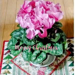 Merry Christmas🎄🤶 ①シクラメン🩷 知人からの🎁 ②クリスマスツリー 駅構内にて ③④クリスマスリース 玄関ドアと部屋 素敵な ✨クリスマスイブ✨ をお過ごし下さい💕 2024.12.24