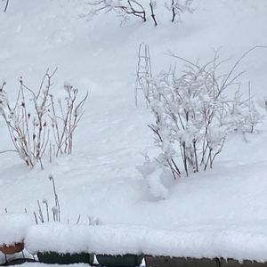 庭木も 種を蒔いた鉢も 昨日からの雪に埋まってしまいました でも 雪布団のお陰で 地温は高く保たれます