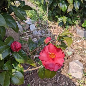 椿。数少ない花🌼下の方ばかり、上には、全然花がない!🤔😅