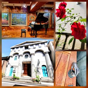 5月4日 生徒さんのピアノコンサートを聴きに 京都に行ってきました。 阪急大宮駅にほど近い 京の町家の中に突如現れる 神殿のような美術館❗ 京都を拠点に活動する画家遠藤剛熈さんの 作品だけを展示する個人美術館 南禅寺を描いた油絵等に囲まれて 音楽を聴くことができるステキな空間 途中、休憩時間には 2階の展示も見せて頂けました。 生徒さんは音大を主席卒業してまだ1年 仲良しのお友達とのジョイントリサイタル バリバリの迫力あるクラシック音楽から ジブリ連弾アンサンブルまで 盛りだくさん聴かせてくれました。 司会もワタシの生徒さん さすがに放送業界に就職しただけあって 楽しませて頂きました。 中庭には真っ赤なバラ🌹 ハーブティーやクッキーもいただいて 素敵な昼下がりのひととき 初夏の陽光と若いパワーに キラキラ✨輝く一日でした。 🏷️金曜キラキラ 🏷️金曜ローズショー