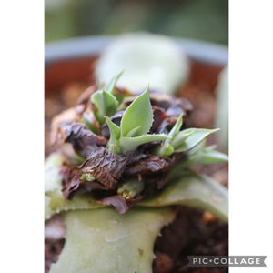 清水の舞台から飛び降りて 連れて帰って5年🪴 今年の冬に何故か枯れていき🥹 葉を切っても蘇らなかって 捨てちゃうよと何度も言ってたら ある日緑色の小さな新芽が🌱 分かる〜この嬉しい気持ち🤗☝️➰🎶🎵➰🪴 元の姿には戻らないけど どんな姿形になるか楽しみ😊 ずう〜っと雷神くんに付き合って 行くからね➰☝️🪴 こんなにしてしまってごめん🙏 アガベ 雷神🪴