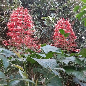 線香花火🌸 台風接近から咲き始め真っ赤に綺麗に成りました。 横から小さな芽が出ています。株が増えるのかと楽しみです。 増えて増えて増えてくれぇ~10本は欲しいなあ😃欲張りかな😀