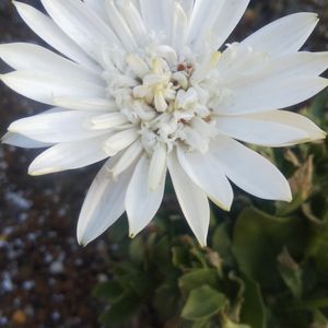 オステオスペルマム 3Dナヌーク 夏越しをした株が、咲き始めました🌼 中心がポコポコした感じになるお花 真っ白な花色が美しいです。 寒くて特徴が出ていないお花も咲いていますね