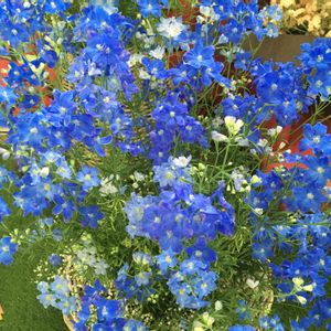 今日リーフでお迎えした ブルーの花達ु❀ु❀ु❀ु❀ 右上 アスペルラオリエン タリスブルー 右下 アジュカ青・白 左上 デルフィニウム 左下 斑入葉ベロニカ ミッフィーブルート
