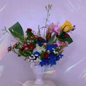 🌼フラワーアレンジメント🌼 桜🌸のオーナメントを添えて💖🌸🤗 黄色いバラ アスター デルフィニウム ソリダコ チューリップ🌷 カスミソウ 春らしく以前作った桜💖のオーナメントを あしらってみました😍 四温待ち遠しいですね🤗 三寒苦手です😁 今日も笑顔の一日を🤗🍀🎶