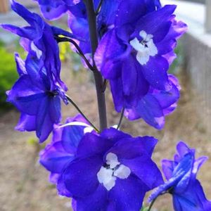 今日のお花 デルフィニウム💙 丈のある花を植えたら高低差が出て素敵な雰囲気になるかな🤔 と思って選んだデルフィニウム✨ 切り花にも◎と書かれていたけれど、予想以上に丈があってビックリ😳 (この写真だとまっすぐに見えてますが、実はかなり傾いてます😅支柱で固定すれば良かったのかな💦) 花が咲き終わる頃に根元で切っておくと来月また2番花が咲くかもしれないらしいのでうまくいくといいなぁ〜くらいの気持ちでチャレンジしてみたいと思います😌