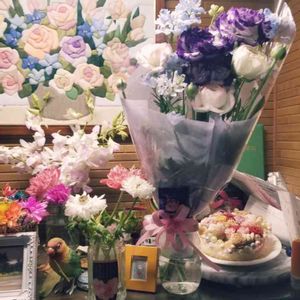 ひさびさに友人達とフラワーセラピーの自主練しました。これはセラピー1回目 次に大きく変化していて自分でもビックリしました‼(•'╻'• )꒳ᵒ꒳ᵎᵎᵎ 次のpicで変化したアレンジのせま~す