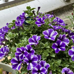 SUNTORYサフィニアアート るり色風ぐるま💜🤍 ①いつ眺めても、可愛い花の形🤗 気温が低くなり白っぽくなりました🤍 ②この数日は、日中暖かくて終わりかな?と思っていたらまた咲いてくれました😊💓 今年は、長雨☔☔☔🐌に酷暑☀🥵🥵☀💦👊さらに、自分自身も多忙になり、お手入れ不足でかなり鉢植えを弱らせました⤵ 今日は、丸1日園芸作業に明け暮れました🧤✂️ かなり疲れました😅 一休み中🍵