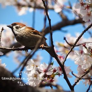 染井吉野と雀 春を待つ小さな桜の蕾がちらほらと。❀.*・゚