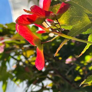 2023,8,2 10:56撮影 枝先が赤くなった木 近くで見ると大きな赤いプロペラ‼️ 立派❗️ 初めて見た😊‼️