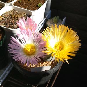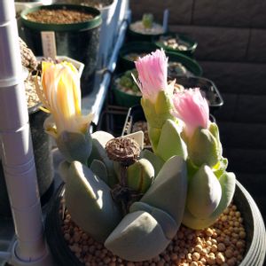 今日はいい天気☀️ おでかけ日和だったのでサボテン団地に行ってきました♬ サボテンの温室が団地みたいに幾つも立っていてその1つがお店になってます 空いていたので店番の農家のおじちゃんと図鑑みて種類調べたり育て方聞いたり楽しいひとときでした🥰 ①小さめのエケベリアがたくさんありました どれも1つ150円 かわいい☺️💕 ②コノフィツムの何か 生産者のおじちゃんが これなんだろうな〜 ピンクか白の花なんだよな〜 わっかんねーな〜 と悩みながら図鑑で調べてくれたけど結局品種はわからなかった😅 一緒にカタログ見たりして楽しかったです😁 ③これはコノフィツムじゃないんだよ👍とおじちゃんが自信満々に教えてくれたケイリドプシス 花が咲いたらこの図鑑のどれだかわかるとのこと🤣 春◯◯という名札を書いてくれたけどそういう名前のは無い😅 どういう事だろ? ④⑤帰ってきてさっそく植え付けました どれもかわいい‼️ 私は⑤のコノフィツムの頭を撫で撫でするのが大好きです🥰
