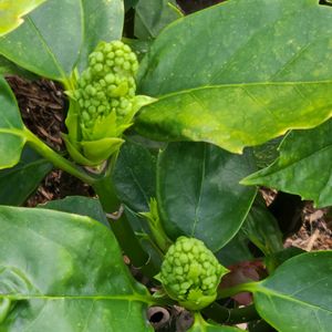 おはようございます🙋♀️ アオキ🍀 ミズキ科 アオキ属 🏷️金曜日の蕾たち 🏷️雄雌異株 🏷️抗菌作用 🏷️青い葉 参加します 外出先 青々とした葉🌿埋もれる様に蕾塊が側にはまだ赤い実を見ることが出来ました💓😊✨️ 実になるのは雌の木のみで雄の木は「バカ」と呼ばれているそうです😲😆 雄の木には実がなら無い!