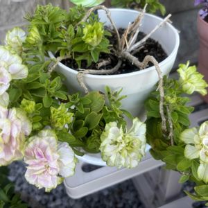 八重のペチュニア 湘南ヴェルデ 木質化して不恰好になりながら 夏、冬乗り越えてくれました ちゃんとお手入れしてあげれば良かった😂