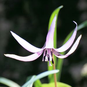 『カタクリ』堅香子(片栗) ユリ科 古語では「堅香子(かたかご)と呼ばれていました。 咲き出しました❣️…と、情報を聞き 昨日、愛知県足助町飯盛山へ会いに行って来ました♪ 《スライドpic》 ①~④ 淡い紅紫が初々しいネ(*´꒳`*)🩷💜 ⑤白花の蕾、見っけ!🤍