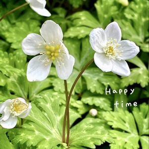 群生している中から探しました… しっかり二輪、咲いてるョ~♪( ◠‿◠ )💕 「ニリンソウ」二輪草 キンポウゲ科 別名・ガショウソウ(鵞掌草)🦤 スプリングエフェメラルの仲間