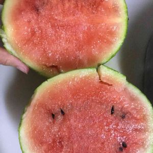 小玉スイカ1号を収穫しました。 夕方の収穫でしたが、甘みもよく乗って美味しいです。