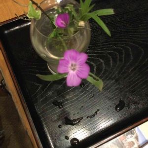 今日は雨だったので外で撮れずに切り花にしました。 葉は殆どが虫食いだったりで、取ってしまいました。花びらの下に細長い葉があります。 としこさんに教えて頂きました。アグロステンマだそうです。ありがとうございました😊 他の花は余り開かずこの一輪がかろうじて咲きました。 もしわかりましたら教えて下さい。