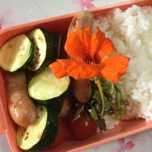 ナスタチウム入りお弁当。 実はこの色のお花が風味1番好きです。色によって若干香りが違うと思うんです。