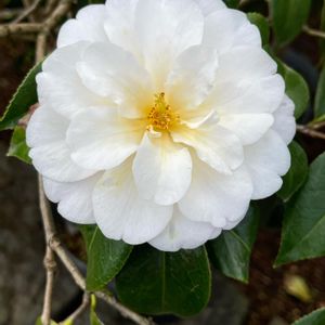 4月から5月が開花期の椿、田代。 花弁は蓮華咲き。 冬から春まで温室では常に椿が咲いているから、冬咲きとか春咲きとかあるって知りませんでした。 透明感ある白色は雪の日を思い出します💚