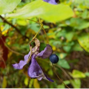 ノササゲ 野大角豆 マメ科 紫の莢と青いお豆が目を惹きます💙 お花は地味で目立たないけど… でも落ちそうだけどよくくっついてるよね😊
