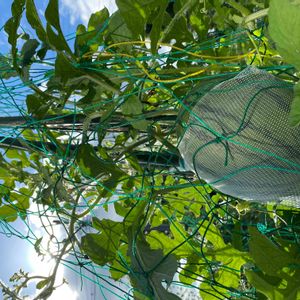 🍉小玉スイカ🍉 今日の家庭菜園より… 初めて吊し仕立てに苗をして やっとスイカらしくなってきました〜😊 でも畑でやった方が もっとたくさん実がつくみたいです🔰😅 今日はお天気だけど少し涼しいです*(^o^)/* 今日も素敵な1日になりますように🍀🍀