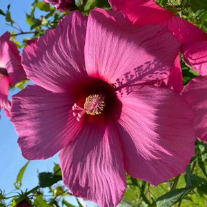 🌸ムクゲ🌸 今日もお天気、蝉の声が凄い朝です〜 夏ですね〜🪰☀️☀️ 暑くなりそうな予感です🥵💦💦 昨日のご近所さんのお宅のお花です …風に揺られながら ピンク色の大きなお花でステキでした 🌸🌸🥰🌸🌸 今日も素敵な1日になりますように🍀🍀