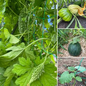 🌱🐶まるさんの家庭菜園より🐶🌱 こんにちは😊 今日はこちらは曇り空で☁️ 昼から…仕事がお休みだったので 畑を見回り👀 ゴーヤ、カボチャ🎃スイカ🍉 順調に成長中です! 右下はきゅうり🥒苗🌱 もう一度植えました! 写真・記録用 今日も頑張れました〜🤗🐶