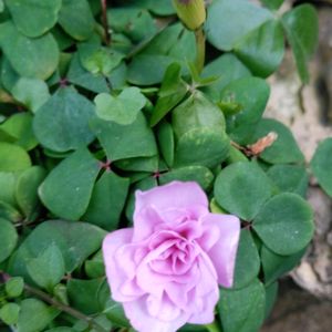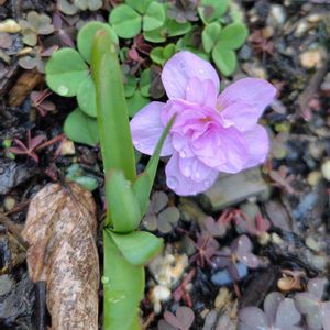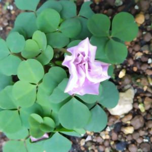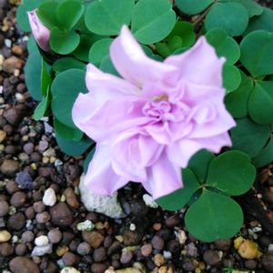 葉がなくなり、何を植えてあったのかも、忘れていた鉢の中から🌸可愛い一輪の花 ☘️🌸☘️ 八重咲きのオキザリスでした („◕᎑◕„)カワイイ☆