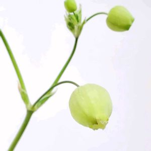 グリーンベル(ナデシコ科シレネ属) 和名 風鈴花 白玉草 北アメリカ原産 「シレネ」の別名よりも見た目通りの緑色のベルみたいな姿からのなまえがわかりやすい 「グリーンベル」ぷっくりと膨らんだ萼の先っちょに花を咲かせます “ベル”というだけあってお花は下向きに咲きます グリーンベルはベタベタとした粘着性のある汁をもっているのが特性です ピンク色のお花を咲かせるモモコヒメもあります 花言葉 偽りの愛 罠 未練 落とし穴 青春の息吹 しつこさ