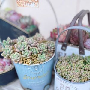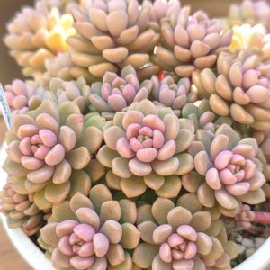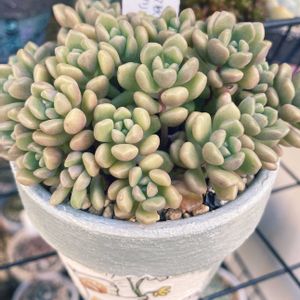 2/26(水)10-17:30 営業です。 本日は、店主は終日在宅しています。 ★だるま姫秋麗×スプリングワンダー 200円 2号ポット(在庫2) 最近、人気のセダム交配種です。 通称「小梅」。 これは、ちまちま屋で育てた葉挿しっ子ちゃんです。 だるま姫秋麗の形を受け継いだ、コロンとした葉が可愛いですね。 スプリングワンダーのように「葉裏がピンク」でもあります。 写真3枚目は現在の親株です。 夏になると葉の緑色が濃くなりますが(写真4枚目)、よく日に当てていると、年中ほんのりピンク色になっています。 (※夏は日に当てすぎないようご注意ください) 写真5枚目のように、スプリングワンダーに似て茎が伸びるタイプなので、ハンギングで垂れさせたりするのもいいですね。 長くなるのが気になるようなら、カットして仕立て直しても〇 寒さにも暑さにも強く、とても育てやすいので、初心者さんにもおすすめです。 葉挿し率も高く、増やしやすい種類です。 お取り置きも承っております。 お気軽にお問合せください。