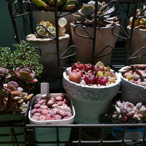 ①日に当たるマウガニーはグミみたいで可愛いです🐸 リトープスもお迎えから1年経ちました。キツキツなので植え替えないといけないです💦 ②エルイエロ錦のその後 なんと全部蕾がつきそうです😱咲いたら枯れるけれど、咲くというならこのまま見守ります🥲 ③今年もピンクザラゴーサ咲きました🌼