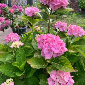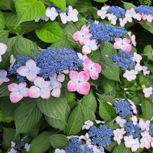 ガクアジサイ アジサイ科の落葉低木 今日のお花 誰かがアルカリ性の物を捨てたのでしょうか?花が急にピンクになりました。