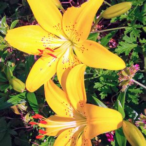🌞こんにちは✨ 今日の お花: 我が家のすかしゆり (過去のpicです20年5月) 緑の多い庭に 元気印の カラーが映えて うきうき🥰