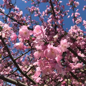 4/2(火)③ ハナカイドウも咲いてきました‼青空に映えます。でも気温は低め。日向は暖かいです😆