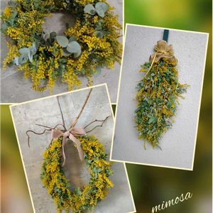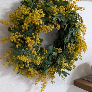 ご近所さんからいただいたミモザで 憧れのリースを作りました💕 嬉しい🟡元気が出る色