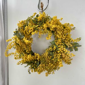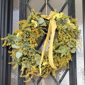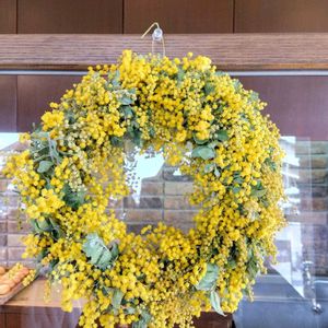 先程投稿しましたミモザのリース大に引き続き… こちらは小のミモザリースを投稿させて頂きます こちらは大に続き昨夜作成を…😉 こちらもカスミ草&花かんざし&ラグラス&名前忘れですが 4種のお花をミモザと一緒に… 可愛ぃ〜感じに仕上がりました🤭🤗🥰 同じく黄色のリボンを添えて…💛✨