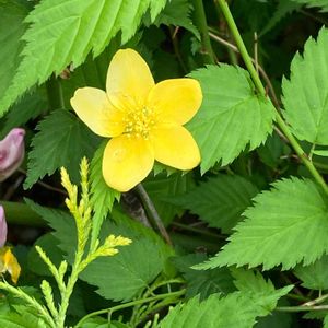 白ヤマブキ✨🌸✨ シワ感のある葉っぱと白いお花、可愛いです😄💕