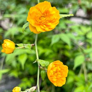 ヤマブキ✨ あざやかな黄色いお花✨ くもり空でも明るく咲いてます🍃