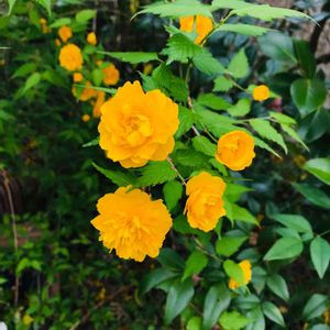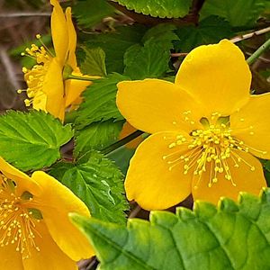 庭パト ヤマブキ三輪開花💛💛💛 去年は一輪💛 ヤッター🙌🙌🙌