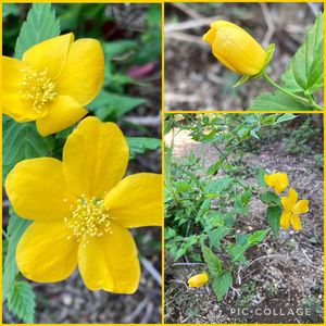 こんばんは🌇^o^ 黄色いお花集めてみました💛💙 ↖️福寿草 花の終わり頃、人参🥕の葉っぱに似ています ↗️ヤマブキ バラ科ヤマブキ属 葉っぱ🌿のギザギザ可愛い💕 ↙️と↘️ミッキーマウスの木 ミッキーマウスのお花お初です。ビタミンカラー💛💙 2022.3.20