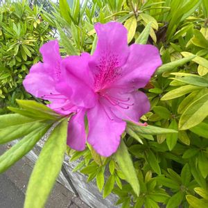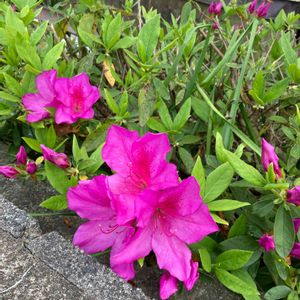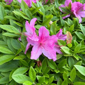 💗オオムラサキツツジ💗 長女の3回目ワクチンで行った会場 市の体育館ですが駐車場と車道をツツジの生垣で区切ってありました。 満開になったら見事でしょうね( ‘-^ )b