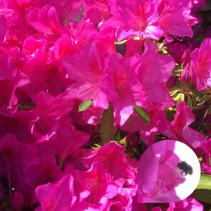 オオムラサキツツジ🌸 ✨今年も満開になりました✨😃 赤紫色で1本の枝に4〜5つお花をつけています✨ 甘い良い香りがふぁっとします(〃ω〃) シャッターをきったら蜂🐝がすべりこみセーフで写り込んでました😝
