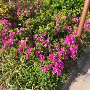 これは、今年5月の幹線道路沿いのオオムラサキツツジです。 ((((;゚Д゚)))))))なんと、昨日見たら、全てが撤去されていました。 なんで、こんなことするんだろう。なんかムカつく😡