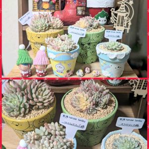 こんばんわ🌙 今日はお披露目、錦の日〜🍀🍀 nikkyさんから鉢届くの待ってたらこんな時間に😆💦 真ん中のブーツ鉢、安定のえつこさんの作品です🎄 リメ缶とリメ鉢は先日届いたsawaさん、iga.berryさんの作品もご紹介🎶 あと1ヶ月でクリスマス🎄 今日から🏷️クリスマス月間付けちゃおう🎶 今日は錦の子たちのお披露目🎶 可愛い子ちゃんたち💕 きまくまちゃんの鉢に決まり🐝🐝🐝🐝 女雛錦ちゃんは何度目かのリベンジ!! 夏越しのためにしっかり根づかせるぞ✨ 今日の見守り隊✨ iga.berryさんのコルクちゃん🎶 頭巾タンズ「KOHさんの8周年anniversary作品あたしたちの鉢もあるらしいよ!」 「楽しみすぎるね🤭💕」