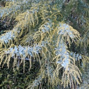 🏷金曜日の蕾たち 🌱アカシア オールリーフワトル🌱 マメ科 樹高が1〜3m位。 アカシアの中でも小柄な部類 細い枝葉が特徴的。 昨年の10月末にとても可愛い丸い花咲かせていました。 先日(2/5)に行ったらまだ花と蕾が付いていました。 🔍すると、四季咲きのアカシアだそうです。 お出かけ先にて 2024年10月26日 2025年 2月 5日撮影です。