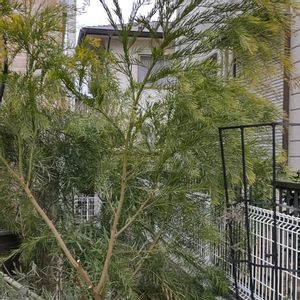 ポット苗から一年 ヨネヤマさんで50円とか100円の見切り アカシアなんだっけが一年放置で勝手に北風避けになってて💦 アカシア、ミモザが凄いけど普通のも暴れん坊💦 北風だけに前に垂れてて春にばっつり行かなあかんw たぶんデアネイw お隣さん優しいけど迷惑ならないように💦 因みに剪定した飛び出た枝に眉のとこをザックリえぐって血だらだら皮膚残ってて張り付けて止血しててんやわんや💦 庭いじり怖さ味わいました💦